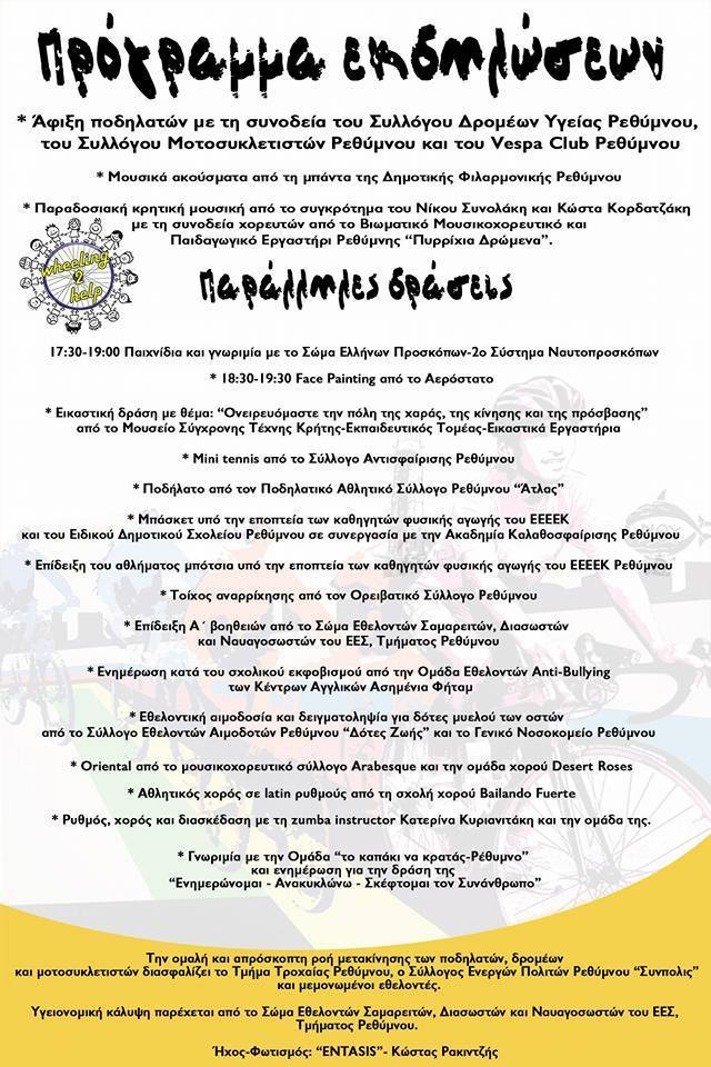 Προτελευταίος σταθμός της δράσης αυτής ήταν το Ρέθυμνο, όπου στις 8/10 πραγματοποιήθηκε 3ωρη γιορτή, υπό την αιγίδα του Δήμου, με πλούσιο ψυχαγωγικό και ενημερωτικό πρόγραμμα από τους συμμετέχοντες φορείς.