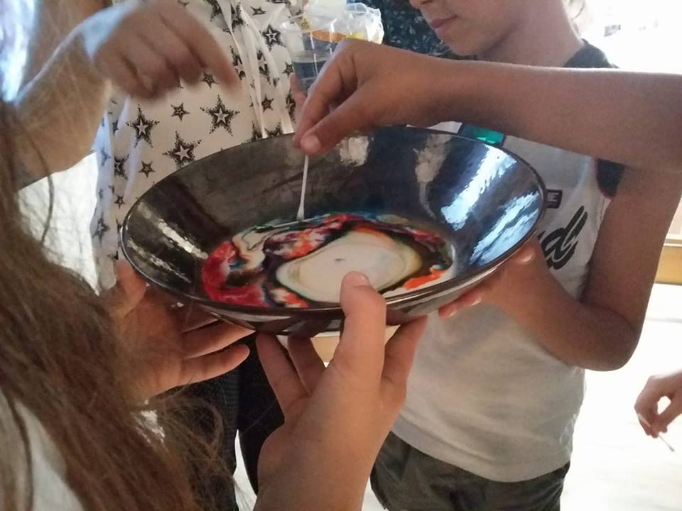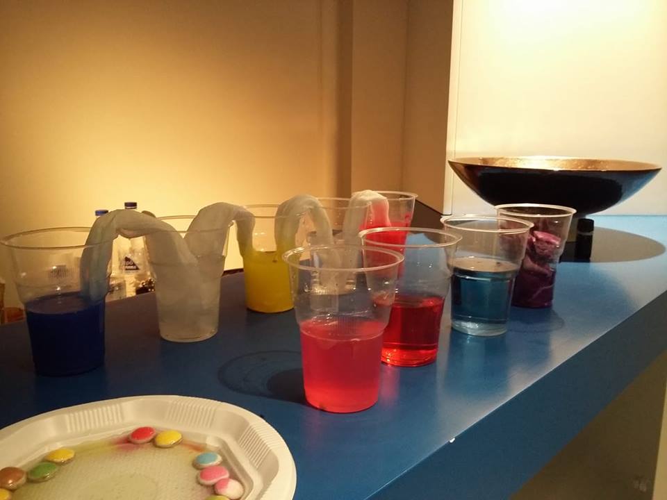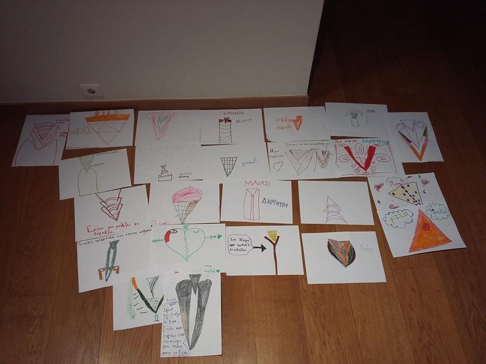 Γνωριζόμαστε και συζητάμε τα χρώματα και τα σχήματα. Κάνουμε πειράματα για να διαπιστώσουμε τα χαρακτηριστικά και τις ιδιότητες των χρωμάτων, ό,τι το χρώμα είναι φως. Δραματοποιούμε το παραμύθι της Ντίνας Λεμπιδάκη για τις 3 γραμμούλες, την κόκκινη, την κίτρινη και τη μπλε και συζητάμε για τα βασικά και τα συμπληρωματικά χρώματα. Βρίσκουμε σχήματα και χρώματα, δημιουργούμε κινήσεις και ιστορίες για τα έργα του Μάρκου και της Σοφίας. Φτιάχνουμε τρισδιάστατα παζλ με υφάσματα και τέλος παίζουμε μουσική και βρίσκουμε τον ρυθμό με αφορμή τα έργα της Σοφίας Πορταλάκη από τη σειρά Manhattan. Ταυτόχρονα μ’ όλα τα παραπάνω και με αφορμή τα έργα του Μάρκου και της Σοφίας, μέσα από τα παιχνίδια, ήρθαμε σε μία πρώτη επαφή ή γνωρίσαμε με βιωματικό τρόπο πώς μπορούμε να βοηθάμε τα νήπια ή τους μαθητές μας να έρχονται σε μία πρώτη επαφή, με βασικές έννοιες της φυσικής, της χημείας, της ζωγραφικής και της μουσικής.