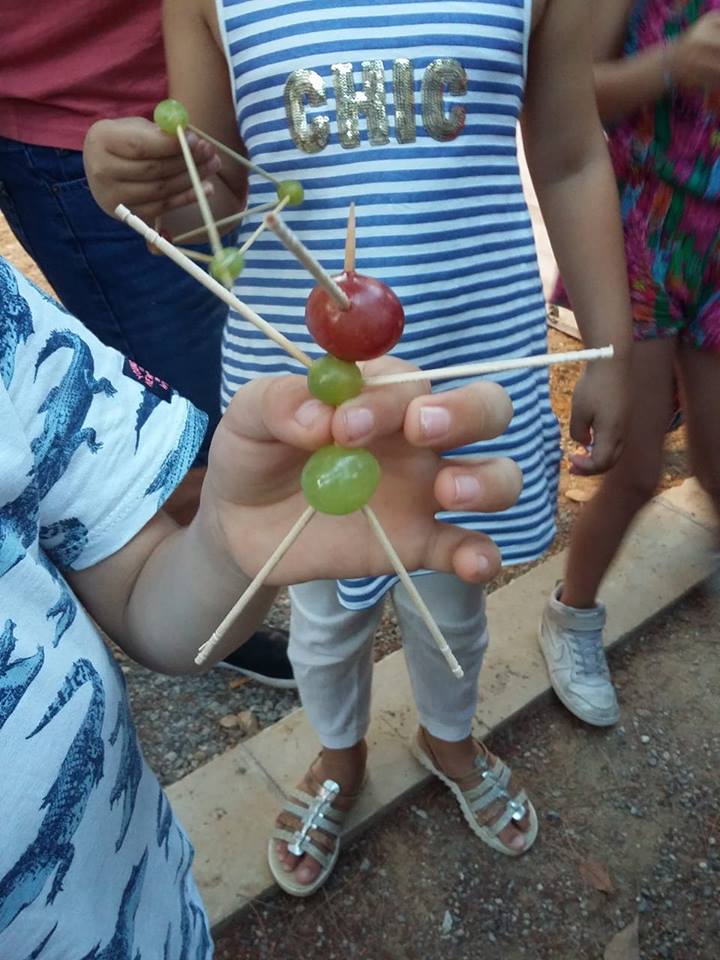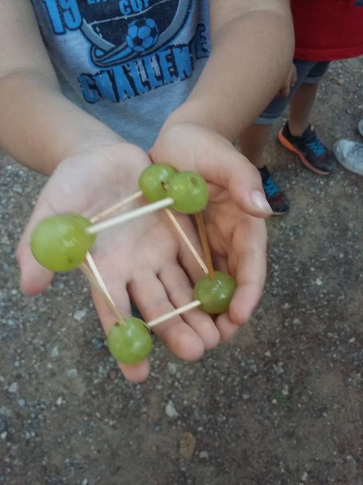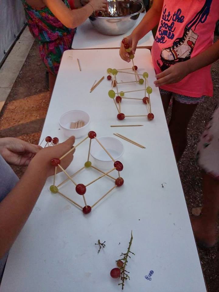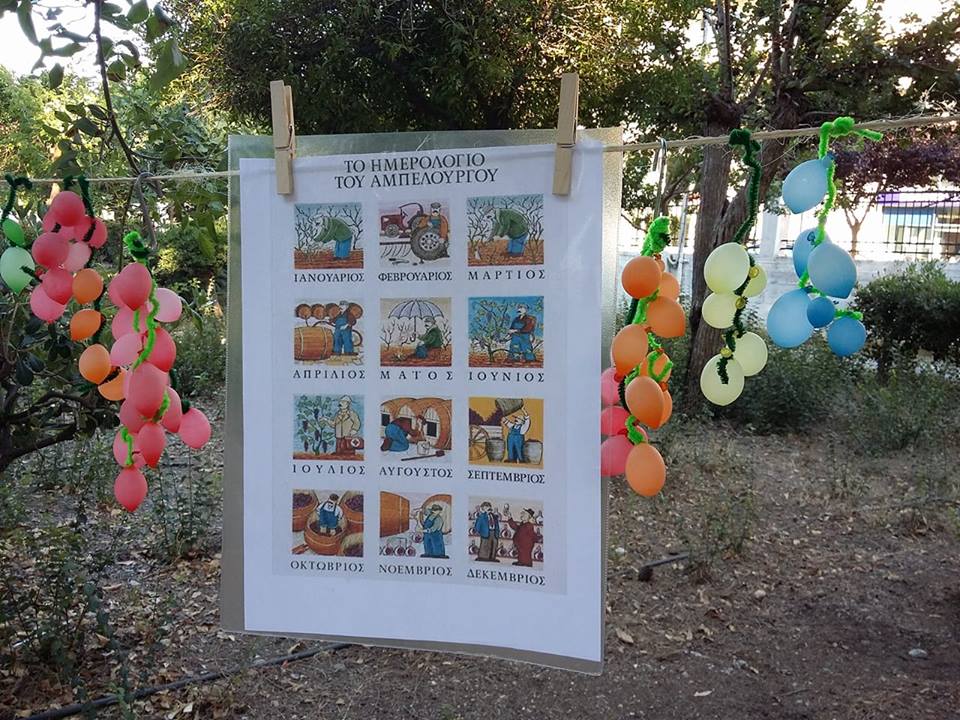 Με πρωταγωνιστές τα σταφύλια, αλλά και τις τέχνες, συζητήσαμε για την αξία των σταφυλιών στη ζωή μας, παίξαμε για να μάθουμε τον κύκλο της ζωής τους και τις λεπτομέρειες της φροντίδας τους. Γευτήκαμε σταφύλια, σταφίδες και πετιμέζι. Κάναμε πειράματα, αλλά και σταφυλο - γλυπτική και σταφυλο - αρχιτεκτονική και τέλος ζωγραφίσαμε με το σταφύλι και για το σταφύλι και χορέψαμε σταφυλο - χορούς!
