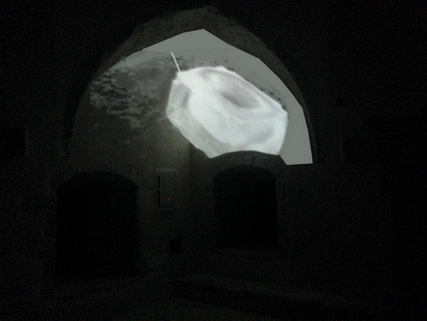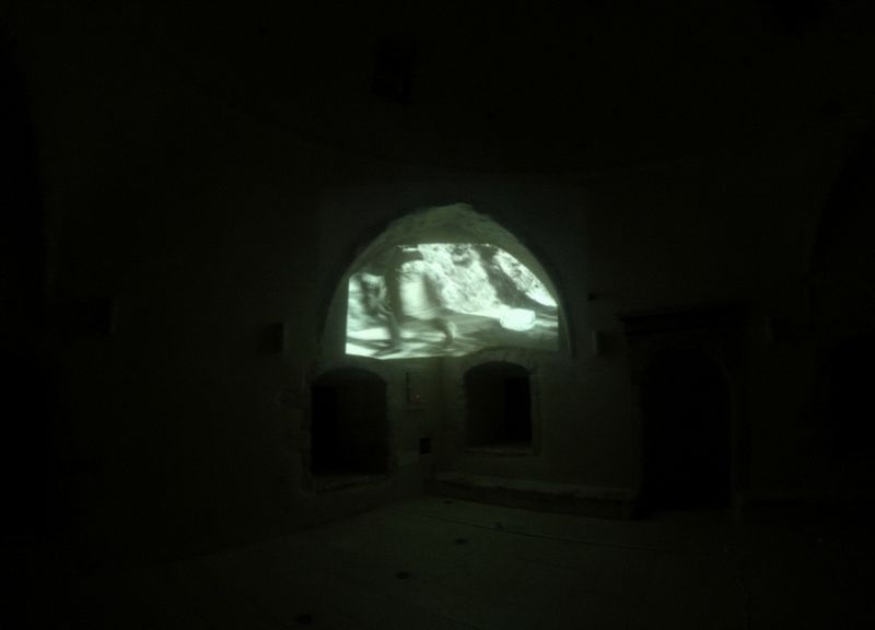 Η βίντεο εγκατάσταση ξετυλίχτηκε ως αφήγηση, πάνω και μέσα στα αρχιτεκτονικά στοιχεία του συγκεκριμένου εσωτερικού χώρου, από τα τόξα και την κόγχη, μέχρι τον τρούλο, και αποτελούνταν από έξι προβολές: Στα τόξα, τοποθετήθηκαν οι φάσεις μιας Σισύφειας ανηφορικής πορείας, με τον σύγχρονο Άνθρωπο να σέρνει ένα κομμάτι πάγου. Στην κόγχη, προβαλλόταν η άνοδος της στάθμης του νερού, ενώ στον τρούλο, παρουσιαζόταν το βίντεο που υπαινίσσεται τον εγλωβισμό του θεατή μέσα στο νερό, καθώς κλείνει αργά το σκέπασμα πάνω από την επιφάνεια του νερού.