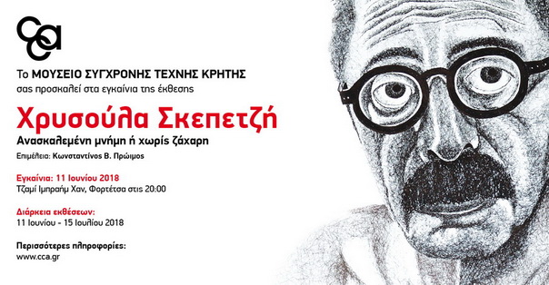 Το Μουσείο Σύγχρονης Τέχνης Κρήτης, παρουσίασε την έκθεση της Χρυσούλας Σκεπετζή, Ανασκαλεμένη μνήμη ή χωρίς ζάχαρη, από τις 11 Ιουνίου μέχρι τις 15 Ιουλίου 2018 σε επιμέλεια του Κωνσταντίνου Β. Πρώιμου.