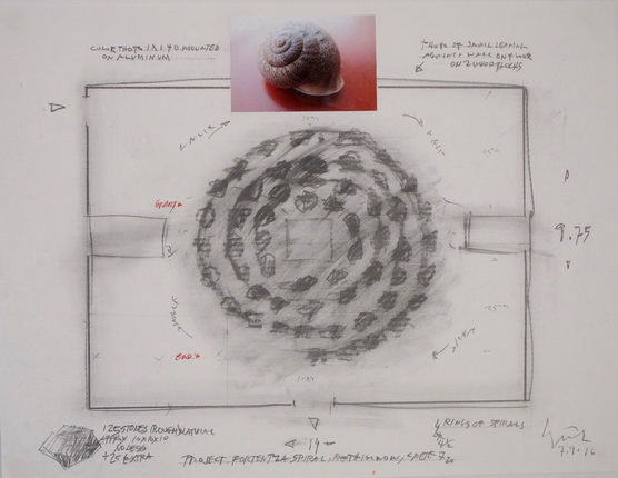 Επρόκειτο για ένα έργο "site specific" οργανωμένο ειδικά για το χώρο, με πρωταρχικά υλικά-πέτρες –στο σχήμα της σπείρας. Ένα σχήμα, γνωστό από την αρχαία ελληνική τέχνη, με συμβολική σημασία ως προς την πορεία της ζωής, συνδεδεμένο στενά με την έννοια του Λαβύρινθου, του κοχλία, του σπειροειδούς γαλαξία αλλά και του μορίου του DNA.