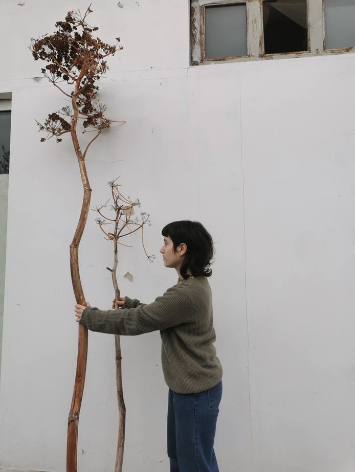 Τα γλυπτά της εμπνέονται από αυτήν την εξερεύνηση, συνδυάζοντας παραδοσιακές τεχνικές με σύγχρονες καλλιτεχνικές πρακτικές. Μια καθοριστική για αυτήν ανακάλυψη συνέβη όταν βρήκε ένα παλιό σκαμνί φτιαγμένο από αρτίκο (Ferula communis) στο σπίτι της γιαγιάς της. Αυτό το απλό αντικείμενο αποκάλυψε πώς οι άποροι ντόπιοι χρησιμοποιούσαν κάποτε αυτό το φυτό, που υπήρχε σε αφθονία, για να δημιουργήσουν χρηστικά έπιπλα. Εμπνευσμένη από αυτό, η Μίνα άρχισε να εμβαθύνει στην ξεχασμένη τέχνη, μεταφράζοντάς την σε σύγχρονο σχέδιο, σκεπτόμενη την απώλεια των παραδοσιακών τρόπων ζωής και προσφέροντας ένα όραμα για την αναβίωση των προγονικών πρακτικών.