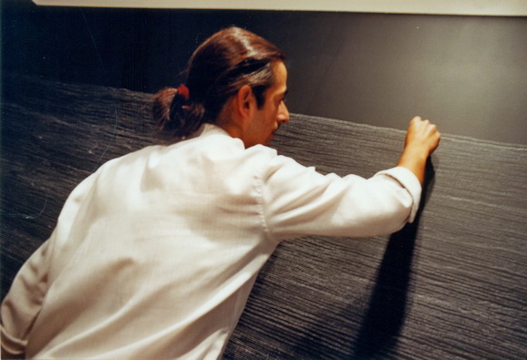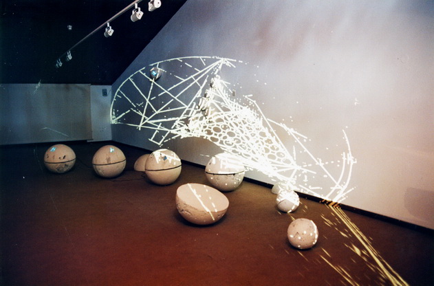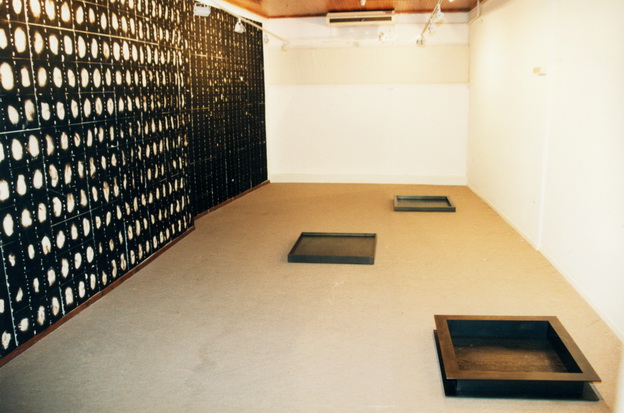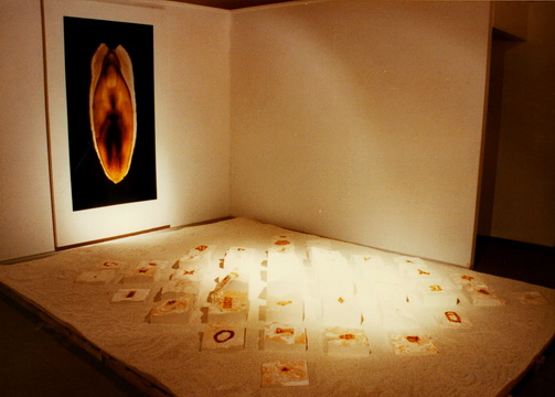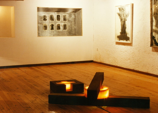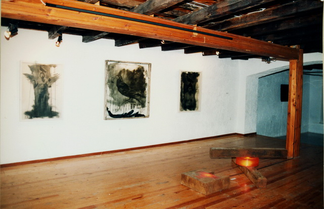 Η έκθεση πρωτοπαρουσιάστηκε το Νοέμβρη και το Δεκέμβρη του 1995 στον Πύργο των Δουκών του Epernon, γαλλικό ιστορικό μνημείο του 17ου-18ου αιώνα, στο Cadiallac, κοντά στο Bordeaux, μετά από πρόσκληση του Συλλόγου “Entre-Deux Mers-Regious d’ Europe” προς τη Βάσια Καρκαγιάννη - Καραμπελιά, να παρουσιάσει νέους έλληνες καλλιτέχνες της διασποράς στη Γαλλία, στο πλαίσιο των εκδηλώσεων “Terres de Grece II”, 1995 (ο Σύλλογος αυτός που εδρεύει στο Bordeux, οργάνωνε τα τελευταία δέκα χρόνια-στο πλαίσιο των ιδιαίτερων δεσμών που είχε αναπτύξει με την Κρήτη ειδικότερα, αλλά και όλη την Ελλάδα – εκδηλώσεις υψηλού επιπέδου που αφορούν τον σημερινό ελληνικό πολιτισμό).