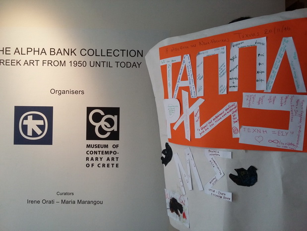 Ο Εκπαιδευτικός Τομέας - Εικαστικά Εργαστήρια του Μουσείου Σύγχρονης τέχνης Κρήτης με αφορμή την έκθεση: “Ελληνική τέχνη από το 1950 έως σήμερα” από τη Συλλογή της AlphaBank που φιλοξενείται στο Μουσείο Σύγχρονης Τέχνης Κρήτης, υλοποίησε Mουσειοπαιδαγωγικό πρόγραμμα με θέμα: “Η αλφαβήτα της νεοελληνικής τέχνης” την Κυριακή 20 Νοεμβρίου στις ώρες 11.00 – 13.00, στο χώρο του Μουσείου (Μεσολογγίου 32).