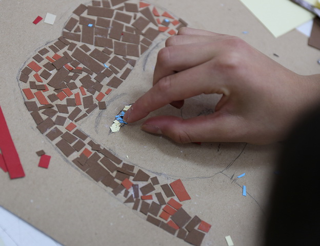 Στο πλαίσιο των μουσειοπαιδαγωγικών δράσεων των Εικαστικών Εργαστηρίων και του Εκπαιδευτικού Τομέα του Μουσείου Σύγχρονης Τέχνης Κρήτης πραγματοποιήθηκε εργαστήριο με θέμα την τέχνη του ψηφιδωτού.