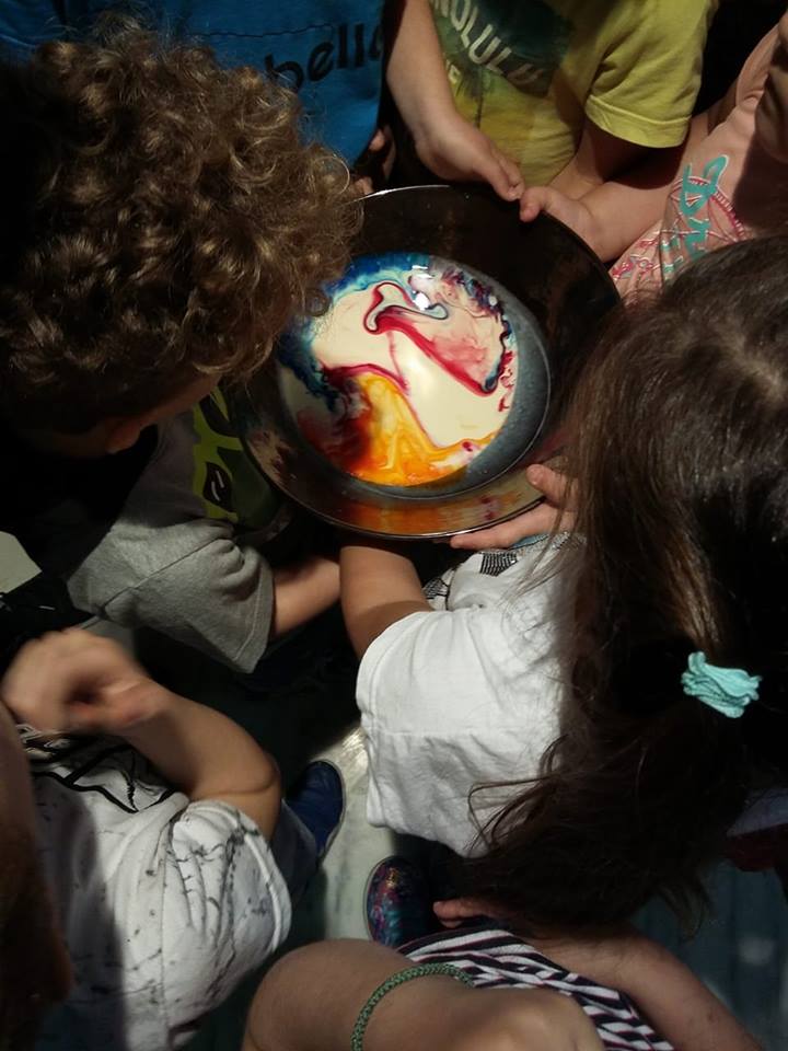 Γνωριζόμαστε και συζητάμε τα χρώματα και τα σχήματα. Κάνουμε πειράματα για να διαπιστώσουμε τα χαρακτηριστικά και τις ιδιότητες των χρωμάτων, ό,τι το χρώμα είναι φως. Δραματοποιούμε το παραμύθι της Ντίνας Λεμπιδάκη για τις 3 γραμμούλες, την κόκκινη, την κίτρινη και τη μπλε και συζητάμε για τα βασικά και τα συμπληρωματικά χρώματα. Βρίσκουμε σχήματα και χρώματα, δημιουργούμε κινήσεις και ιστορίες για τα έργα του Μάρκου και της Σοφίας. Φτιάχνουμε τρισδιάστατα παζλ με υφάσματα και τέλος παίζουμε μουσική και βρίσκουμε τον ρυθμό με αφορμή τα έργα της Σοφίας Πορταλάκη από τη σειρά Manhattan. Ταυτόχρονα μ’ όλα τα παραπάνω και με αφορμή τα έργα του Μάρκου και της Σοφίας, μέσα από τα παιχνίδια, ήρθαμε σε μία πρώτη επαφή ή γνωρίσαμε με βιωματικό τρόπο πώς μπορούμε να βοηθάμε τα νήπια ή τους μαθητές μας να έρχονται σε μία πρώτη επαφή, με βασικές έννοιες της φυσικής, της χημείας, της ζωγραφικής και της μουσικής.
