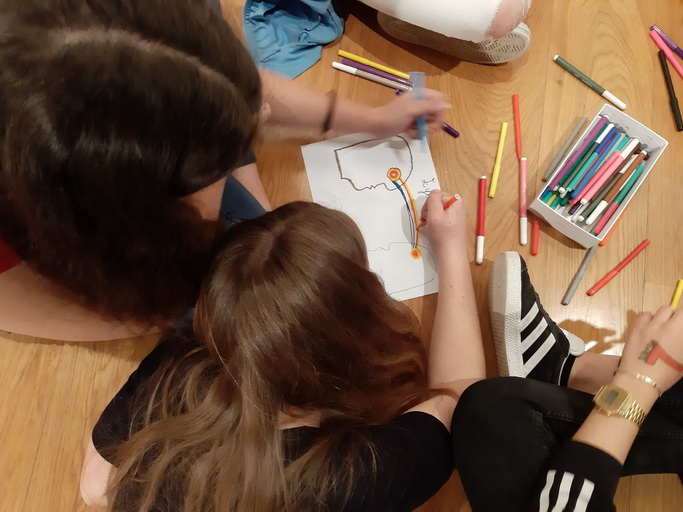 Συζητήσαμε με 18 μαθητές και μαθήτριες της Β’ τάξης και 18 μαθητές και μαθήτριες της Ε΄ τάξης του Δημοτικού Σχολείου του Πρινέ για τις τέχνες και προσπαθήσαμε να εντοπίσουμε τις αγαπημένες τέχνες του Βαλέριου Καλούτση, τη ζωγραφική, τη φωτογραφία και τη γλυπτική. Στη συνέχεια κάναμε μία βιωματική περιήγηση στο έργο, αξιοποιώντας τον διάλογο και τη συνεργασία και τέλος δημιουργήσαμε τα δικά μας έργα.