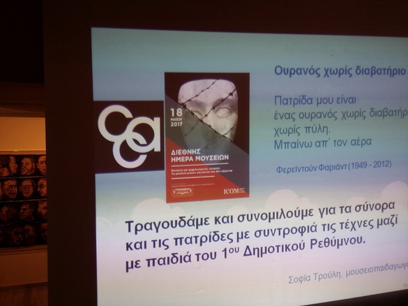 Το Μουσείο Σύγχρονης Τέχνης Κρήτης άνοιξε τες πόρτες του και γιόρτασε μαζί με παιδιά της Γ' και της Στ΄Δημοτικού του 1ου Δημοτικού Σχολείου Ρεθύμνου, συνομιλώντας για το προσφυγικό και τραγουδώντας το Καρδιοχτύπι του πιανίστα Zaid Dirani, πρεσβευτή της Unicef (دقة قلب - زيد وأنسام وأطفال سوريا) στα ελληνικά και στα αραβικά, μεταφέροντας ένα μήνυμα ελπίδας, ειρήνης και αισιοδοξίας!