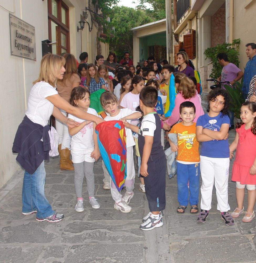 Με την επίβλεψη των δασκάλων - εικαστικών, τα παιδιά κατασκεύσαν με κόκκινο, κίτρινο, μπλε ελαφρύ χαρτί, όμορφα, πρωτότυπα αερόστατα - σύμβολα γιορτής και χαράς.