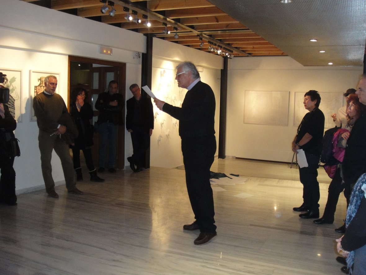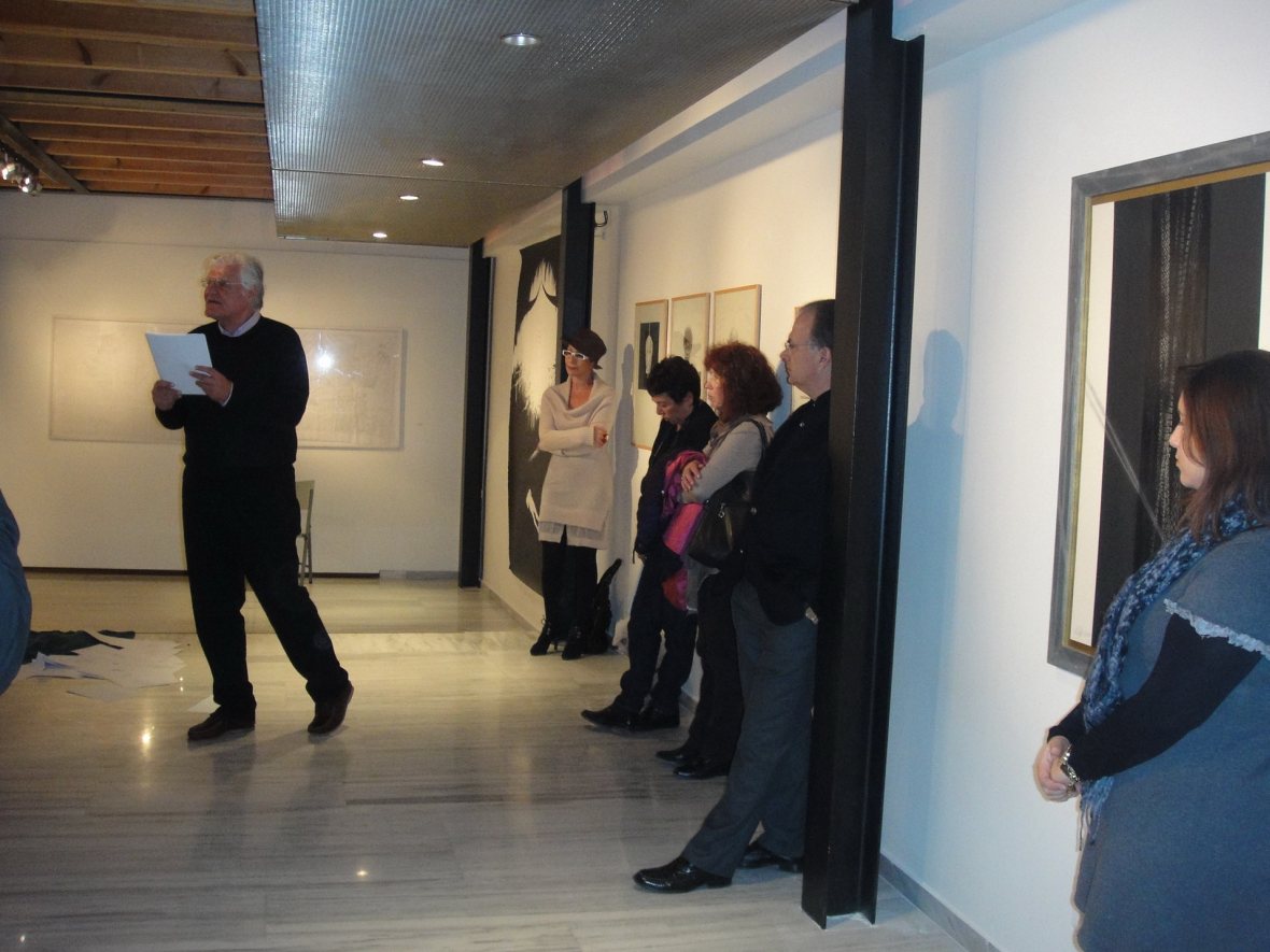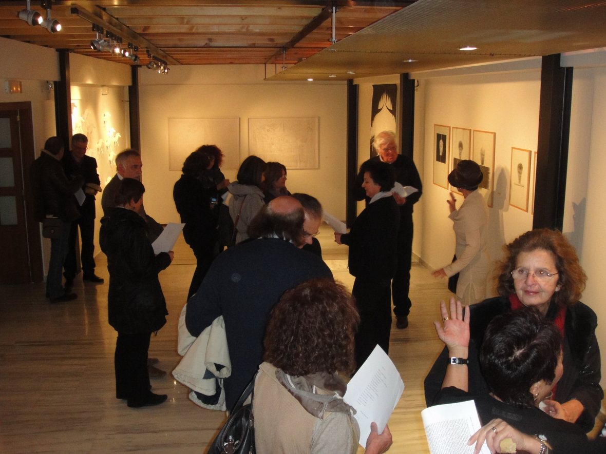 Στη διάρκεια των εγκαινίων της έκθεσης "Διαδρομή. Έργα από τη Μόνιμη Συλλογή", ο εικαστικός Άγγελος Σκούρτης παρουσίασε την ποιητική – εικαστική περφόρμανς στους χώρους του Μουσείου.
